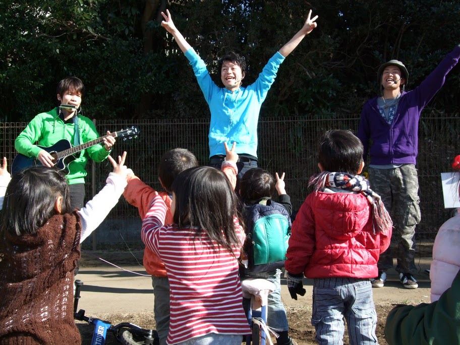 終了後はお決まりの保育士のお兄さんバンド「ピース」による歌あそびライブ。
